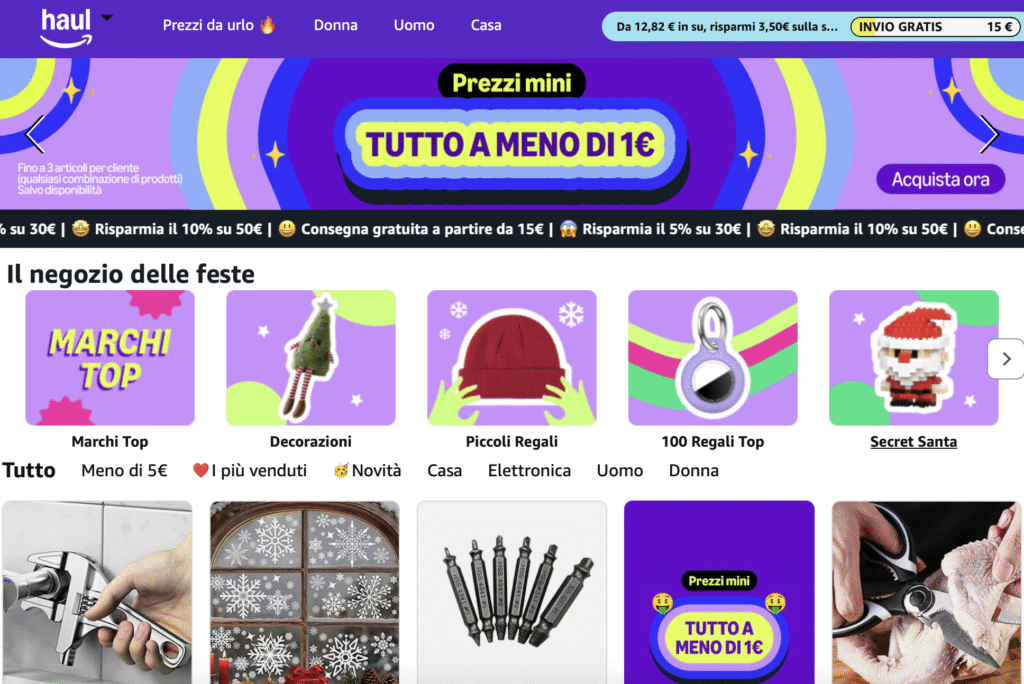 Haul è una delle novità più recenti di Amazon: una vetrina dedicata a prodotti dal prezzo estremamente aggressivo, con l’obiettivo di proporre “prezzi mini” e in risposta a piattaforme come Temu e AliExpress. La sezione è disponibile direttamente all’interno della pagina Amazon Haul e presenta articoli di ogni categoria: piccoli accessori, oggetti per la casa, gadget, micro-elettronica, utensili e prodotti lifestyle.
