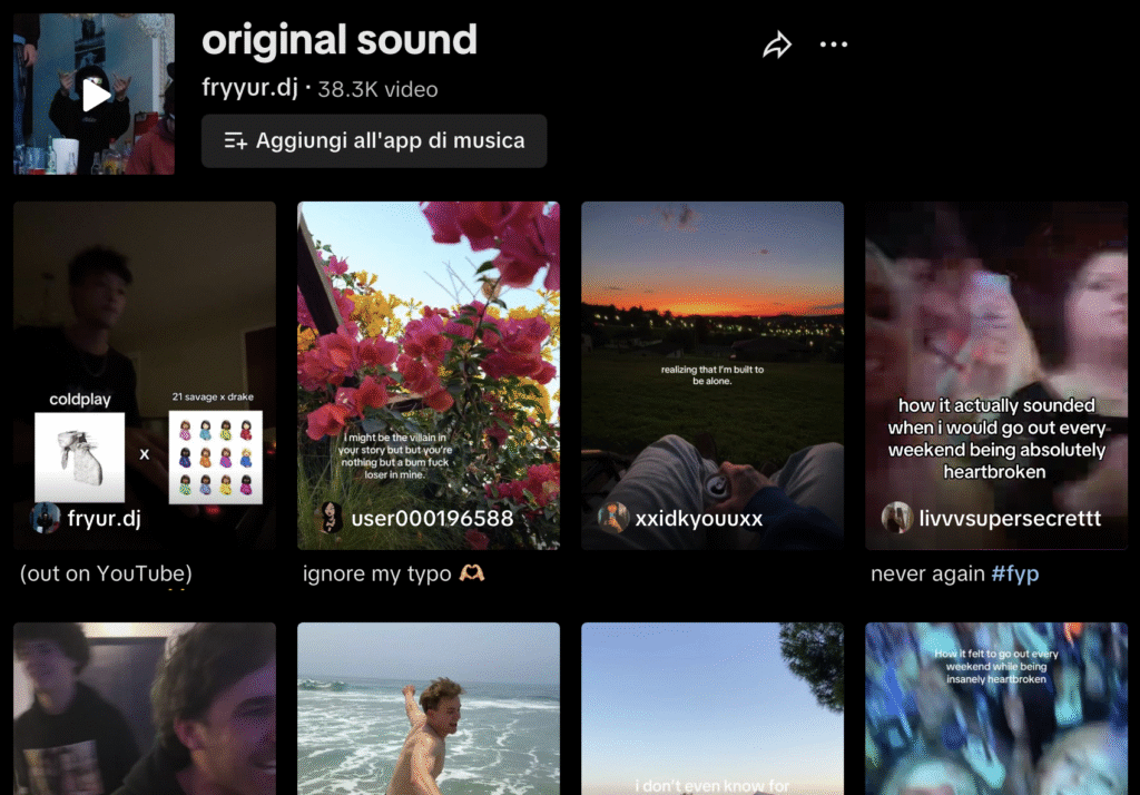 Sulla pagina del suono originale i conteggi mostrano oltre 38k utilizzi e continuano a salire, ma il numero effettivo è più alto considerando re-upload e versioni derivate. Traduzione: è virale.
