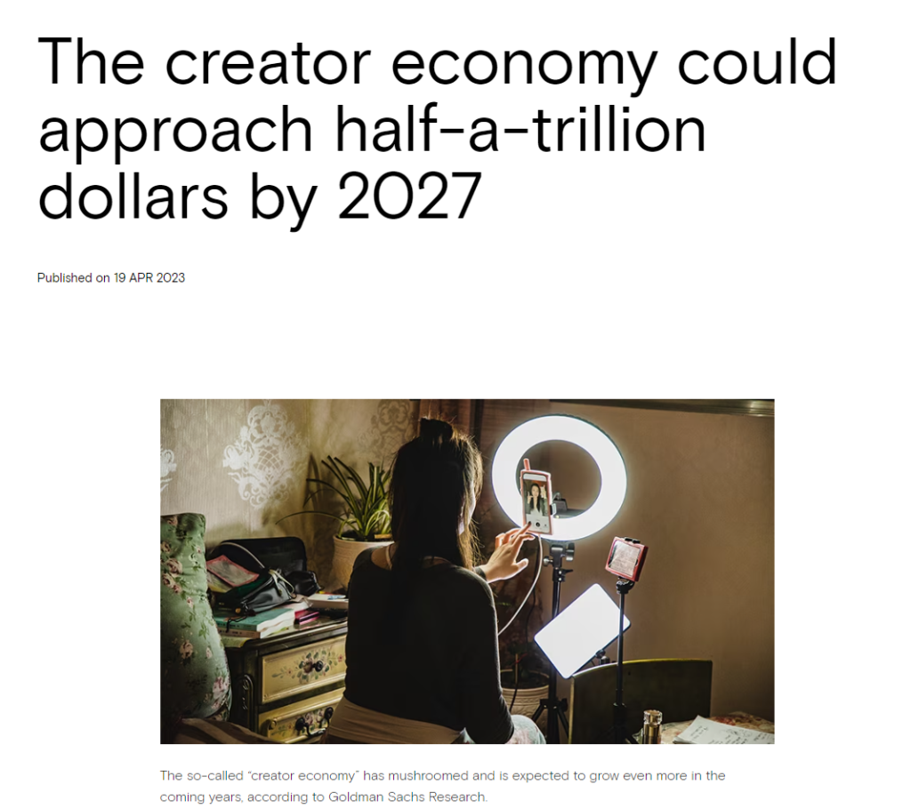 L’economia dei creator è diventata un business così grande da trasformare i social media da luoghi di solidarietà a una piattaforma globale di distribuzione che fiorisce nel business della creazione di contenuti. Un rapporto di Goldman Sachs stima che la creator economy nel 2027 sarà valutata a 480 miliardi di dollari, quasi il doppio di quanto vale ora, ovvero 250 miliardi.