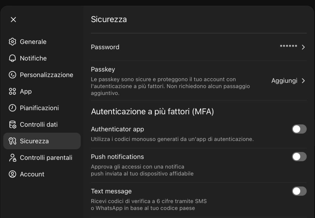 Per ChatGPT specificamente, OpenAI ha introdotto l’autenticazione a due fattori. Anche se abilitare l’MFA non protegge completamente dal session hijacking, rappresenta comunque una barriera importante. Vai su Impostazioni > Sicurezza e attiva l’autenticazione multi-fattore utilizzando un’app come Authy o Google Authenticator.